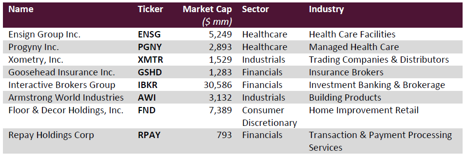 Progyny (PGNY) also detracted from the quarter’s results despite actually raising earnings estimates in the quarter. Progyny is the leading provider of managed fertility benefits to large employers. The market is concerned primarily about the impact of layoffs at large technology companies, many of whom are Progyny clients. The issue is real, but we think it is dramatically overestimated given Progyny’s diverse customer base in which more than 80% come from outside tech, and the fact that they have modest single digit penetration of their core target market while having near 100% client retention, outstanding outcomes, and no direct competition able to offer a similar service. Armstrong World Industries (AWI) also declined somewhat, and Goosehead Insurance (GSHD) was a very modest negative performer.